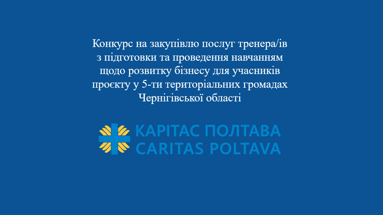 Благодійна організація «Благодійний фонд «Карітас Полтава» запрошує суб’єкта господарювання надати цінову пропозицію на надання послуг щодо розвитку бізнесу для учасників проєкту у 5-ти територіальних громадах Чернігівської області у межах реалізації проєкту «Молодь в дії: школа молодіжного підприємництва».